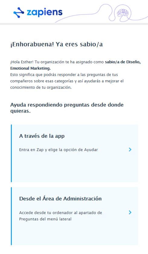 Nota: Los usuarios asignados, desde el Área de Administración, como Administradores de temas, recibirán automáticamente una comunicación a través de su correo electrónico. En esta comunicación se les explica su nuevo rol, las categorías que administra y cómo responder a las preguntas desde la App y el Área de administración: